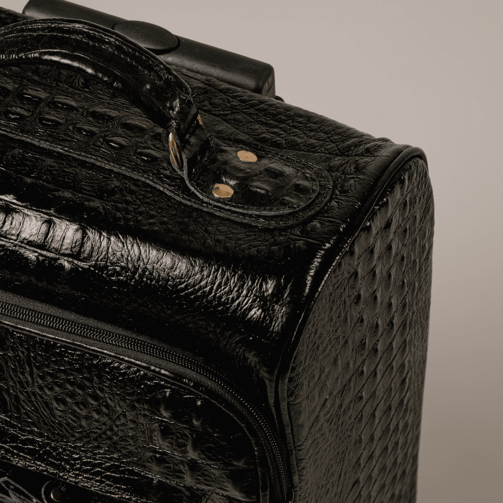 - Detalhes Luxuosos: Com seu design elegante e sofisticado, ela garante que você chegue ao seu destino com muito charme e segurança. Transforme suas jornadas em experiências inesquecíveis e viaje com o requinte que você merece. Seu design próprio não só destaca o requinte do couro croco dourado, mas também proporciona praticidade e sofisticação. Sendo erfeita para acompanhar você em qualquer aventura, sempre com muito charme e elegância. Experimente o luxo e a exclusividade em movimento com nossa Mala de Rodinha em Couro Croco Preto e transforme suas viagens em momentos inesquecíveis!